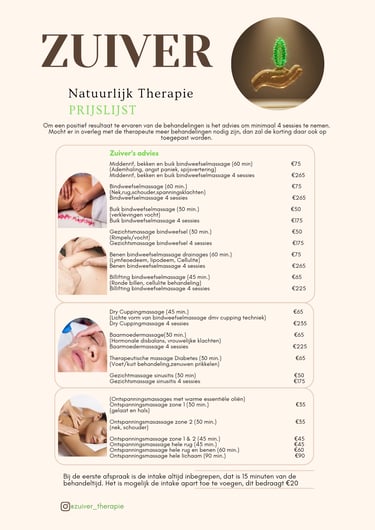 Heldere tarieven voor elke behandeling, zonder verrassingen.
